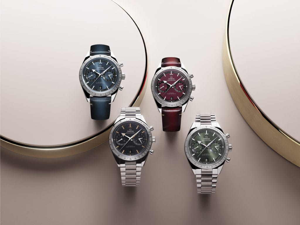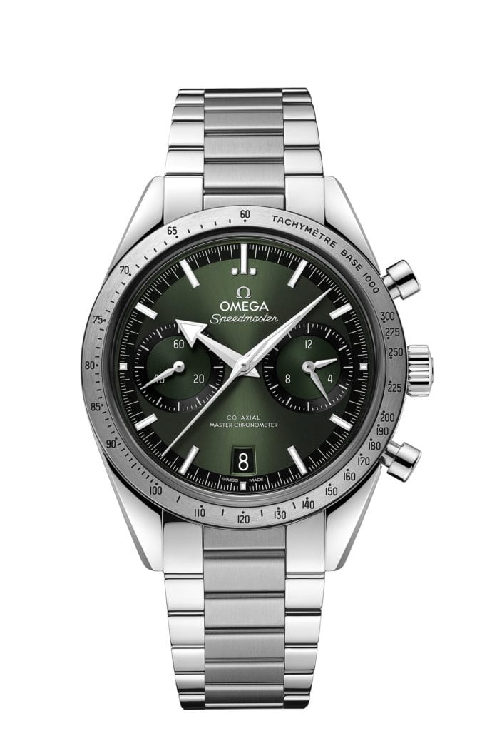 Lancée en 2013, l’OMEGA Speedmaster ’57 fait son grand retour en 2022 dans une nouvelle version Master Chronometer avec un boîtier au profil affiné. La nouvelle collection regroupe huit nouveaux modèles en acier inoxydable, tous animés par le calibre OMEGA Co-Axial Master Chronometer 9906. L’intégration d’un mouvement à remontage manuel permet d’amincir le boîtier et la lunette pour offrir aux nouvelles ’57 un look plus épuré. Une édition à cadran noir style « sandwich » avec index des heures creusés et revêtus de Super-LumiNova vintage s’ajoute à trois modèles avec cadran PVD bleu, vert ou verni bordeaux. L’ensemble de la collection est présenté sur un bracelet en acier inoxydable ou en cuir de couleur assortie.