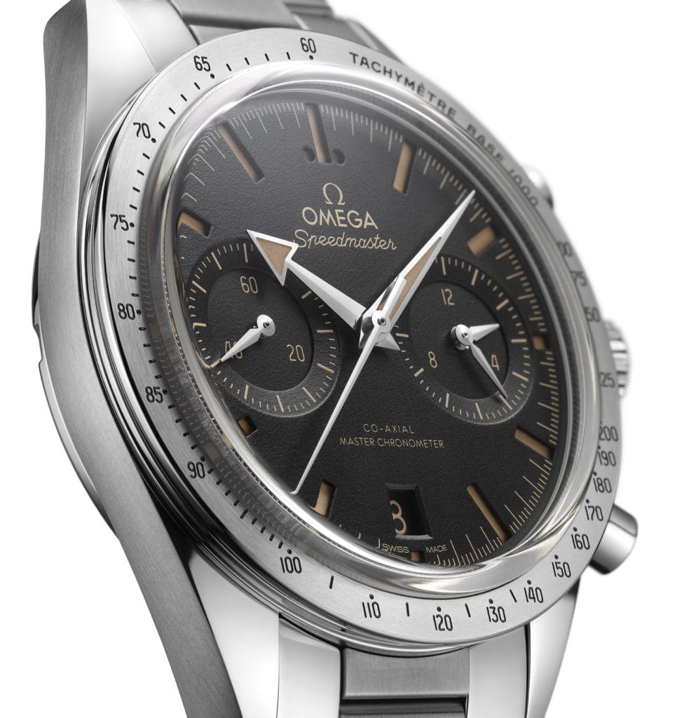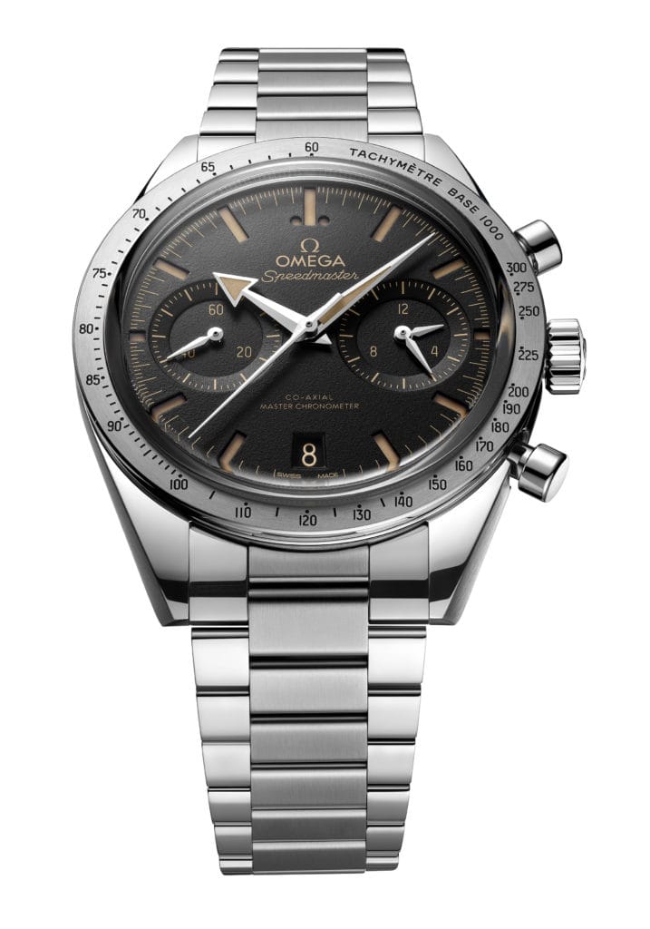 Avec seulement 12,99 mm d’épaisseur, la nouvelle ’57 est considérablement plus mince que la Speedmaster Moonwatch 3861 et ses 13,58 mm. Sans surprise, on retrouve aussi un clin d’œil à l’histoire spatiale de la Speedmaster. Sur la version acier, le bracelet est inspiré par celui d’une édition hommage à Apollo 11 lancée en 2019 et équipé du système de réglage confort breveté OMEGA.