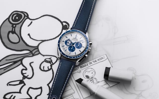 Notre beagle préféré joue un rôle prédominant dans la montre. Dans la première édition, Snoopy apparaissait allongé sur un médaillon en argent gaufré sur le compteur bleu à 9 heures. Il est cette fois représenté vêtu de sa célèbre combinaison spatiale. Son attirail est directement inspiré du style des épingles d’argent que les astronautes de la NASA attribuaient à la personne de leur choix en signe de récompense.