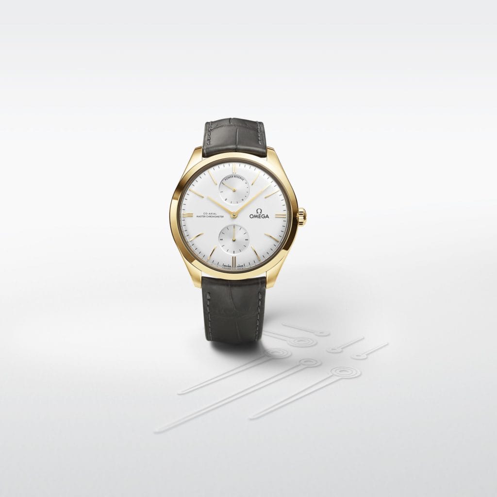 L’aspect le plus intéressant de ce nouveau design est sans doute l’apparition de nouveaux compteurs. Tous les modèles incluent un affichage de la petite seconde à 6 heures et certains le complètent par l’indication de la réserve de marche à 12 heures. Sur ces derniers, le positionnement unique des deux compteurs signifie que le logo OMEGA a été déplacé à 3 heures.