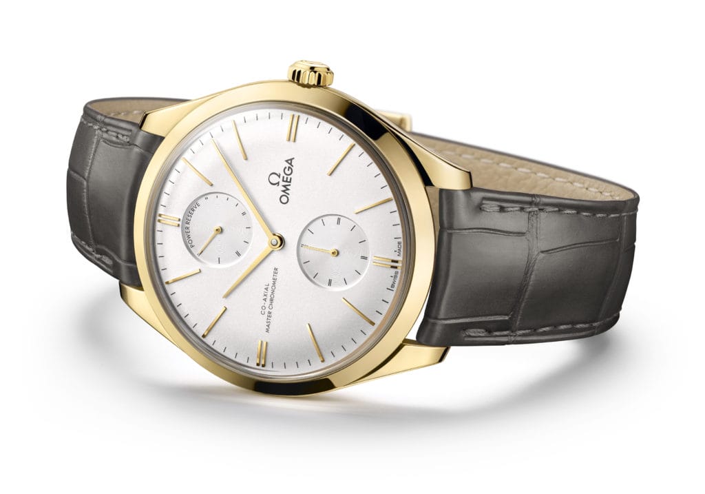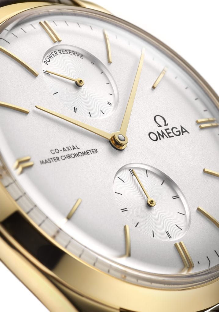 L’aspect le plus intéressant de ce nouveau design est sans doute l’apparition de nouveaux compteurs. Tous les modèles incluent un affichage de la petite seconde à 6 heures et certains le complètent par l’indication de la réserve de marche à 12 heures. Sur ces derniers, le positionnement unique des deux compteurs signifie que le logo OMEGA a été déplacé à 3 heures.