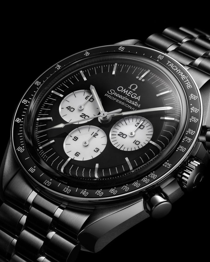 OMEGA décline cette nouvelle Speedmaster Moonwatch noir et blanc en deux versions de 42 mm, chacune exprimant une facette différente de l’icône lunaire.