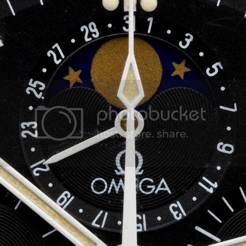 – la première Speedmaster Moonwatch avec phases de lune (référence ST 345.0809), produite dès 1985 pendant environ 3 ans,