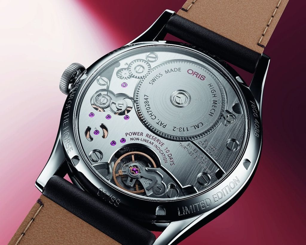 Au cœur de cette Year of the Horse Limited Edition bat le Calibre Oris 113, l’un des mouvements les plus ambitieux développés par la marque. Entièrement mécanique à remontage manuel, il se distingue par une impressionnante réserve de marche de 10 jours, soit 240 heures, affichée à l’aide d’un indicateur non linéaire situé à 3 heures.