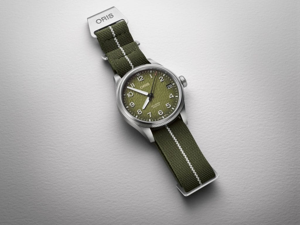 Bracelet en textile vert, créé par Erika’s Originals, en exclusivité pour Oris.