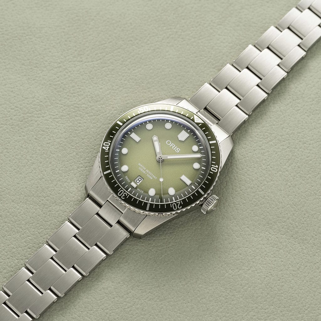 Cet été, nous vous invitons à vous plonger dans la nature avec les teintes vert forêt de la nouvelle Divers Sixty-Five 40 mm. L’originalité de la montre réside dans son cadran et sa lunette aux couleurs dégradées, inspirées des forêts denses qui entourent notre usine historique dans le village suisse de Hölstein, niché au cœur de la vallée de Waldenburg, notre foyer depuis 120 ans. Tout aussi intemporel est l’esprit joyeux et ludique de notre Divers Sixty-Five rétro, une renaissance contemporaine de notre toute première montre de plongée de 1965.