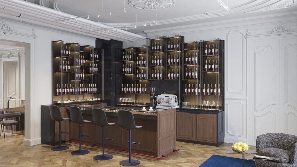 L’équipe chargée de la conception a imaginé bien plus qu’une boutique : c’est la maison de nos clients, et de ceux qui veulent en savoir plus sur Panerai. Nous souhaitons que chacun s’y sente comme chez soi, profondément connecté à l’histoire de la marque, mêlant tradition et innovation à travers une expérience à 360°. Dans cet espace ouvert, le « Bar Italiano » est un lieu unique, à la fois café et bar, hommage à la tradition italienne de l’aperitivo, qui invite les clients à savourer l’art de la convivialité.