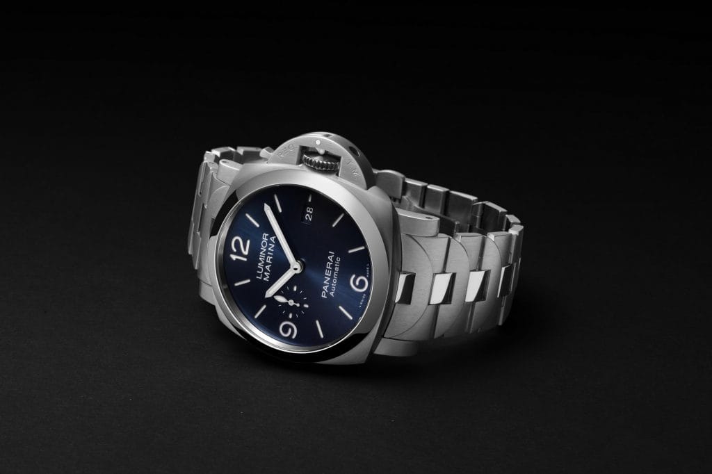Étanche jusqu’à 30 bar (environ 300 mètres de profondeur), la nouvelle Luminor Marina – 44 mm s’accompagne d’un bracelet en acier avec finition alternée polie et satinée, qui peut être remplacé par un bracelet en cuir, fermé par une boucle déployante à double poussoir gravée du logo « OP ». Ce modèle est vendu avec un outil spécial permettant de changer le bracelet.