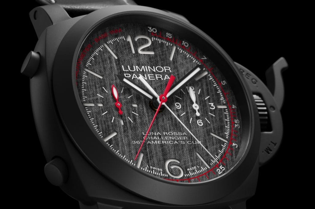 Le résultat apporte une touche audacieuse à la collection dédiée à Luna Rossa, dont Panerai est le Sponsor officiel, et bien entendu, la Montre officielle. C’est la raison pour laquelle ces modèles sont spécifiquement équipés d’éléments adaptés aux courses de voiliers, tels que le compte à rebours régate, le chronographe Flyback ou encore le GMT, qui peut être réglé sur le fuseau horaire d’Auckland pendant les régates en Nouvelle-Zélande.