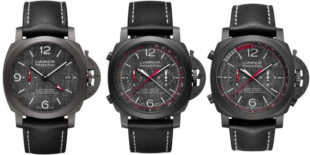 Le résultat apporte une touche audacieuse à la collection dédiée à Luna Rossa, dont Panerai est le Sponsor officiel, et bien entendu, la Montre officielle. C’est la raison pour laquelle ces modèles sont spécifiquement équipés d’éléments adaptés aux courses de voiliers, tels que le compte à rebours régate, le chronographe Flyback ou encore le GMT, qui peut être réglé sur le fuseau horaire d’Auckland pendant les régates en Nouvelle-Zélande.