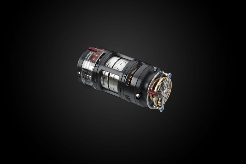 Ce rouage planétaire inédit fait appel au plus petit roulement à billes du monde : 1.28 mm de diamètre pour 12 billes en céramique de 0.2 mm de diamètre. Très loin en taille – mais très proche en technologie – des roulements à billes utilisés pour la Bugatti Chiron ! Chacun des trois planétaires comprend trois roulements, soit neuf roulements à billes au total. Aspect non négligeable, l’ensemble n’exige aucune lubrification, ce qui représente un gain tant en termes de fiabilité que de maintenance.