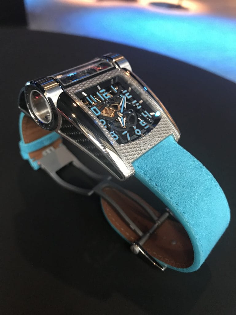 Chaque année, Bugatti transmet le cahier des charges de sa nouvelle voiture aux horlogers de la Manufacture Parmigiani Fleurier… L’an dernier c’était la Bugatti Chiron, cette année place à la Divo ! La Manufacture a ensuite mis en œuvre tout son savoir-faire pour réaliser une pièce en adéquation avec les particularités de ce nouveau bolide. Ainsi, le 1er octobre lors du lancement parisien très confidentiel de la voiture, la montre Parmigiani Fleurier Bugatti Type 390 Divo a été révélée au public.
