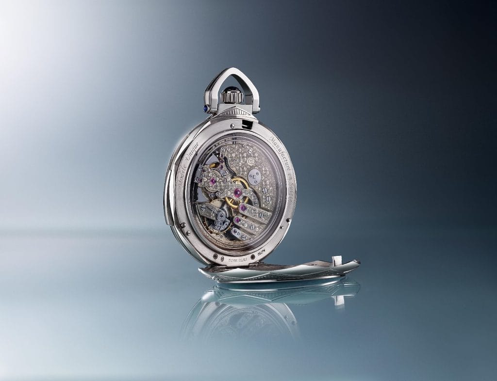 Sur demande, la montre sonne les heures sur une tonalité grave, les minutes sur une note aiguë, et les quarts par une alternance des deux. Cette architecture sonore, patiemment réaccordée par l’Atelier de Restauration de Parmigiani Fleurier, restitue la clarté et l’équilibre de la voix d’origine. La construction interne du boîtier, volontairement ouverte, favorise la propagation des vibrations et confère à la répétition minute une présence sonore d’une grande pureté.