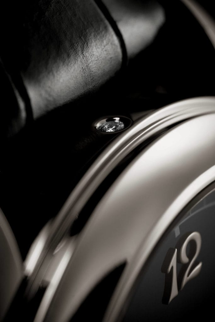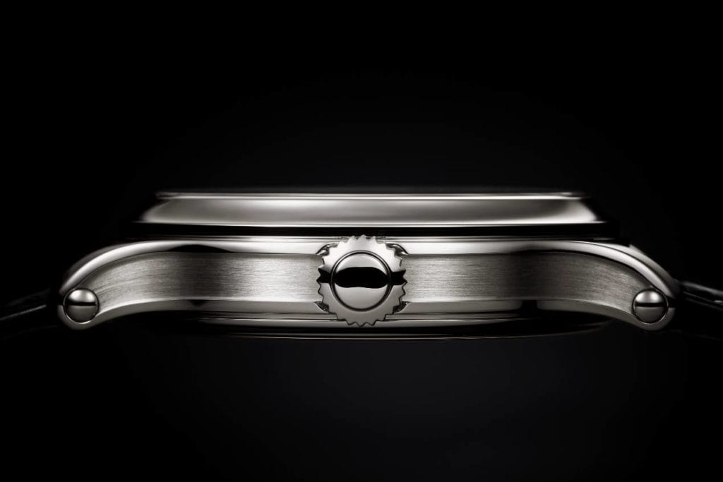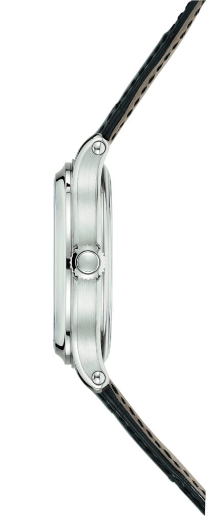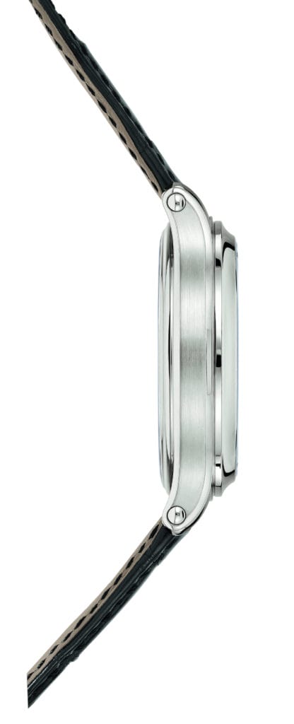 La nouvelle Grande Sonnerie référence 6301P est dotée d’un habillage très raffiné – un reflet du principe cher à Patek Philippe selon lequel même une Grande Complication doit être belle à porter au quotidien. Le boîtier en platine, inspiré de celui développé pour le chronographe à rattrapante référence 5370 en 2015, se démarque par son jeu subtil de courbes et de rondeurs s’enchaînant dans une belle harmonie, par sa lunette concave assurant une transition parfaite avec le verre saphir légèrement bombé et par ses flancs creusés et satinés. Comme tous les boîtiers en platine Patek Philippe, il est orné d’un petit diamant – serti ici à 12h (et non à 6h, comme à l’accoutumée), en raison de la présence de la targette de sélection du mode de sonnerie.