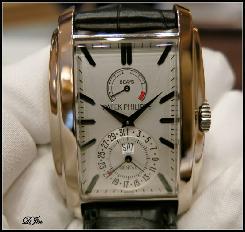 La Gondolo 5200 en or gris bénéficie d’un tout nouveau calibre rectangulaire 28-20 à remontage manuel développé spécialement pour offrir, en particulier, un affichage de quantième et jour de la semaine concentrique et quasi-instantané inédit, une réserve de marche de 8 jours, une fréquence de 4 Hz, un stop-seconde…