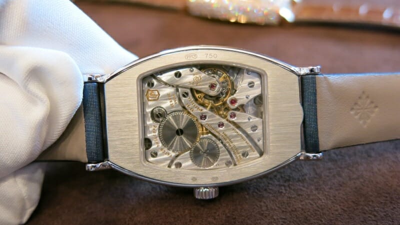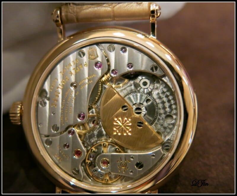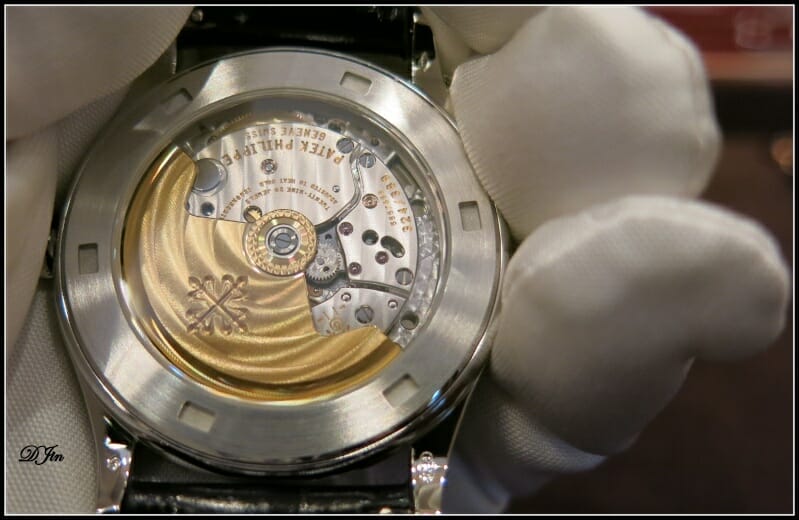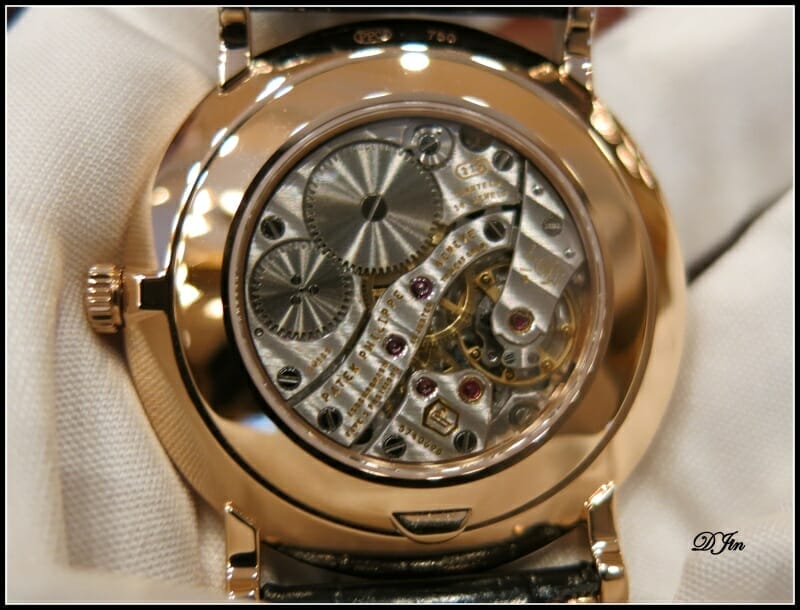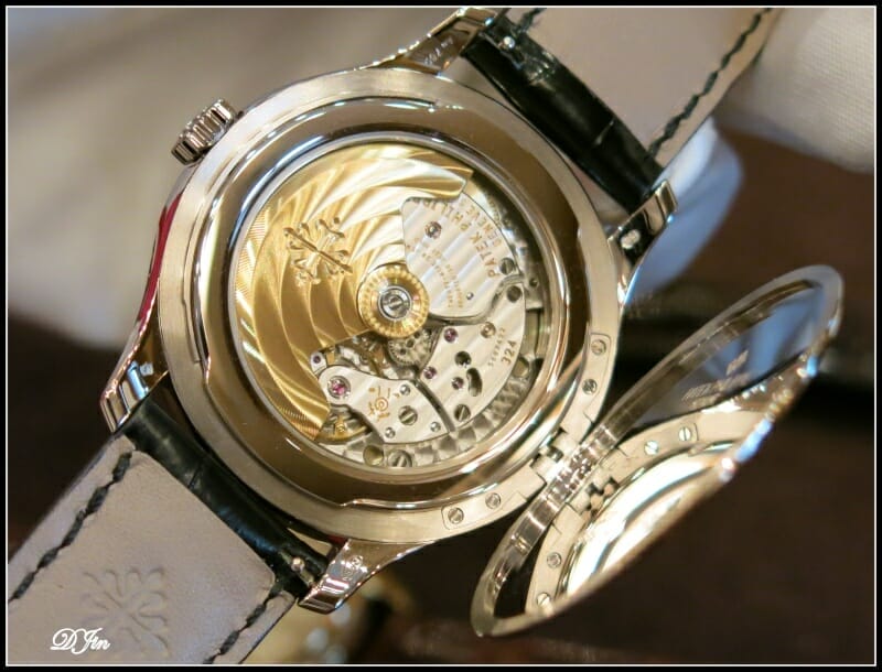 … et qui laisse, une fois ouverte, admirer le calibre automatique 324 et sa belle masse oscillante. Cette Calatrava est vraiment l’archétype de la montre élégante !