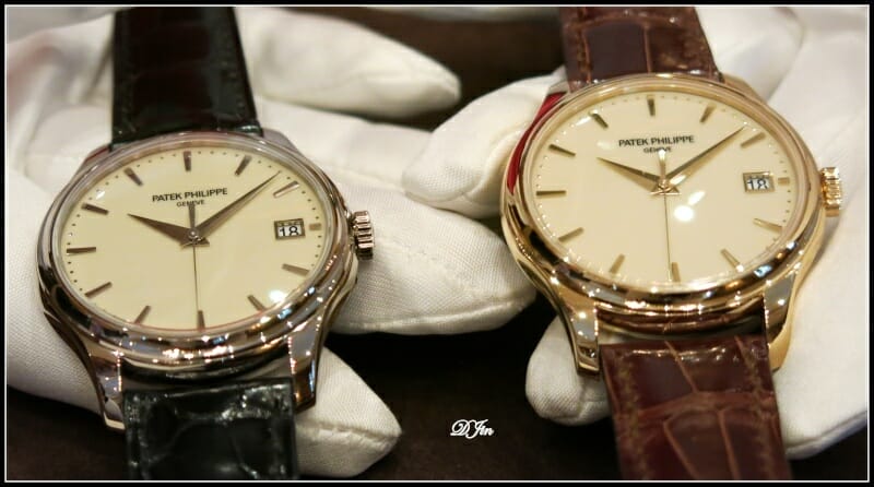Impossible de passer sous silence ici la référence 5227, nouveau trio de modèles trois aiguilles + date épurés en 39mm au cadran ivoire laqué en 12 couches successives qui capte délicatement les reflets du métal précieux. Ici en or gris et en or rose sur leurs beaux bracelets alligator (disponible également en or jaune)