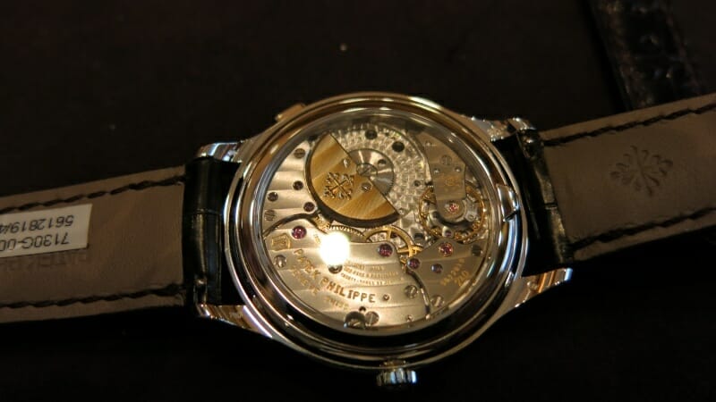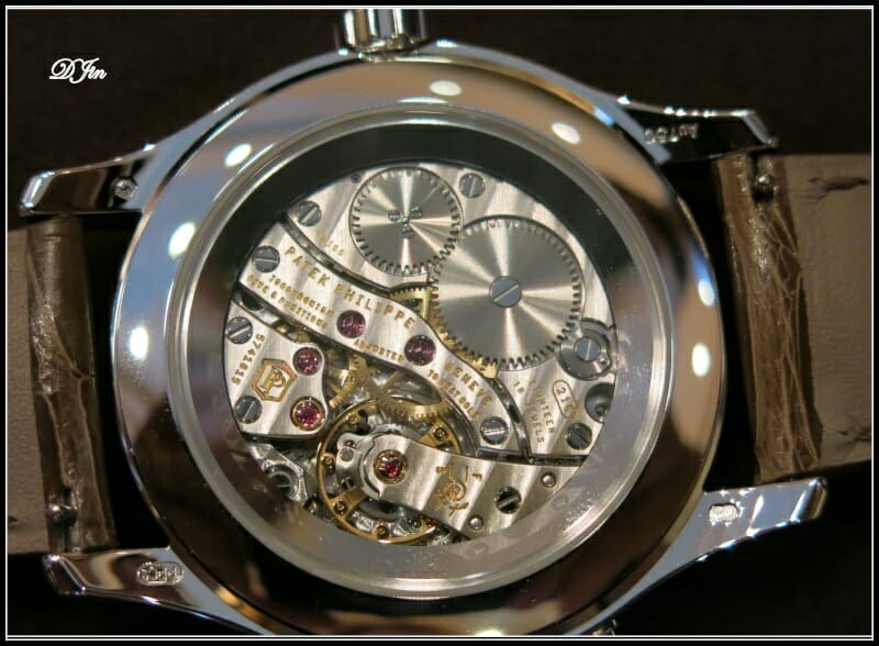 Le calibre automatique 240 avec micro-rotor qui anime cette Calatrava est évidemment visible à travers son fond saphir.