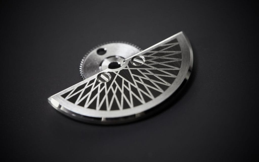 Masse oscillante : Mini-rotor en platine 950 texturé laser, remontage unidirectionnel