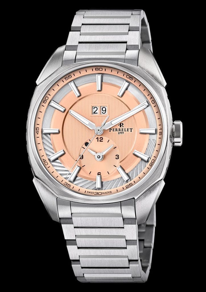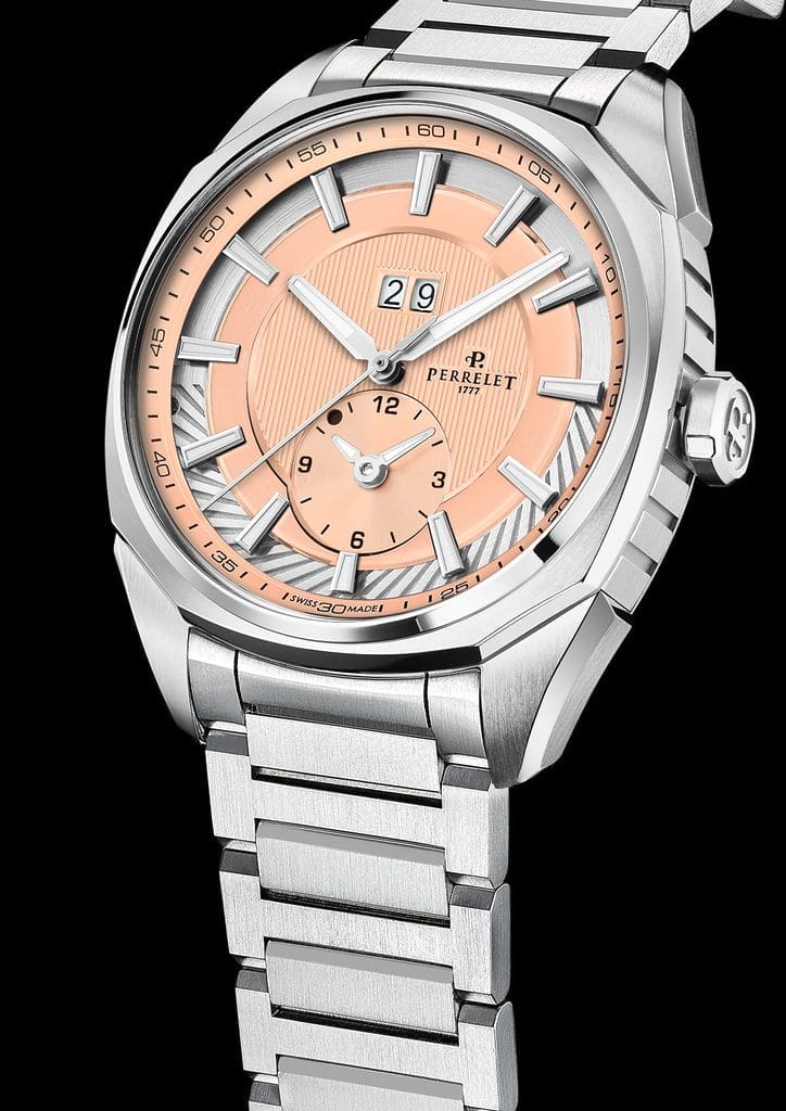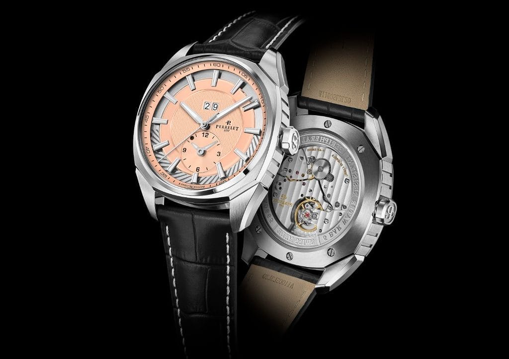 Les cadrans de couleur saumon ont connu leur heure de gloire au milieu du XXe siècle, époque emblématique de la montre-bracelet élégante. Leur palette raffinée — un subtil mélange de rose, d’orange, de pêche et de rouge — revient aujourd’hui au premier plan, porté par une vague vintage appréciée des amateurs d’horlogerie classique. Ce n’est pas un simple effet de mode : ces teintes rappellent les grandes heures des années 1950, incarnant la continuité d’un savoir-faire intemporel. La Maison Perrelet, fondée en 1777, s’inscrit pleinement dans cette tradition de maîtrise artisanale et d’innovation constante.