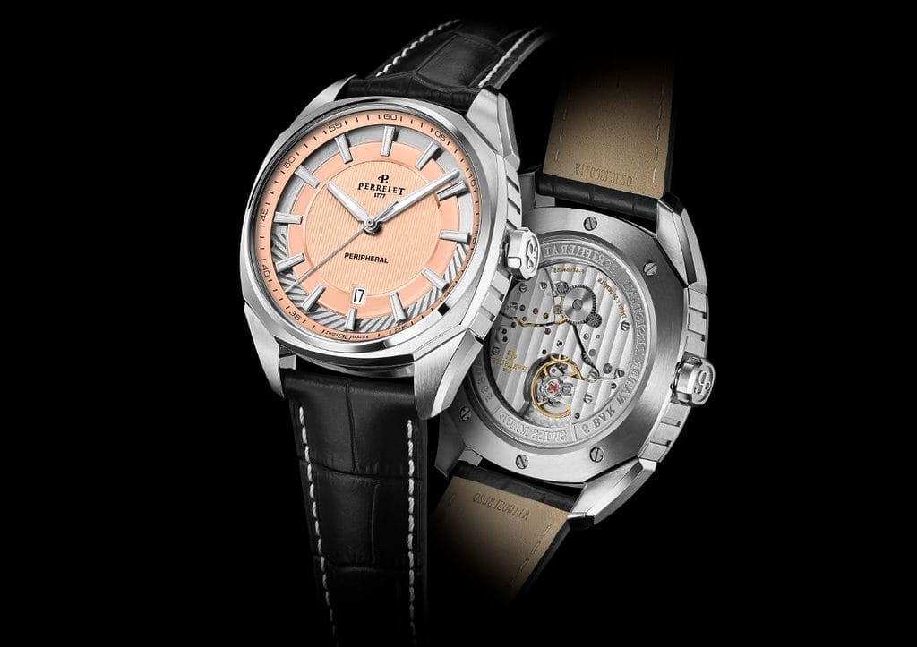 Perrelet enrichit sa collection LAB Peripheral avec de nouvelles déclinaisons inédites : pour la première fois, un bracelet en acier fait son apparition, accompagné d’une élégante teinte saumon. Cette couleur subtile met en valeur l’élément signature de la collection : la masse oscillante périphérique visible côté cadran.