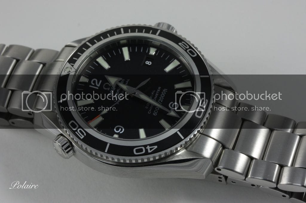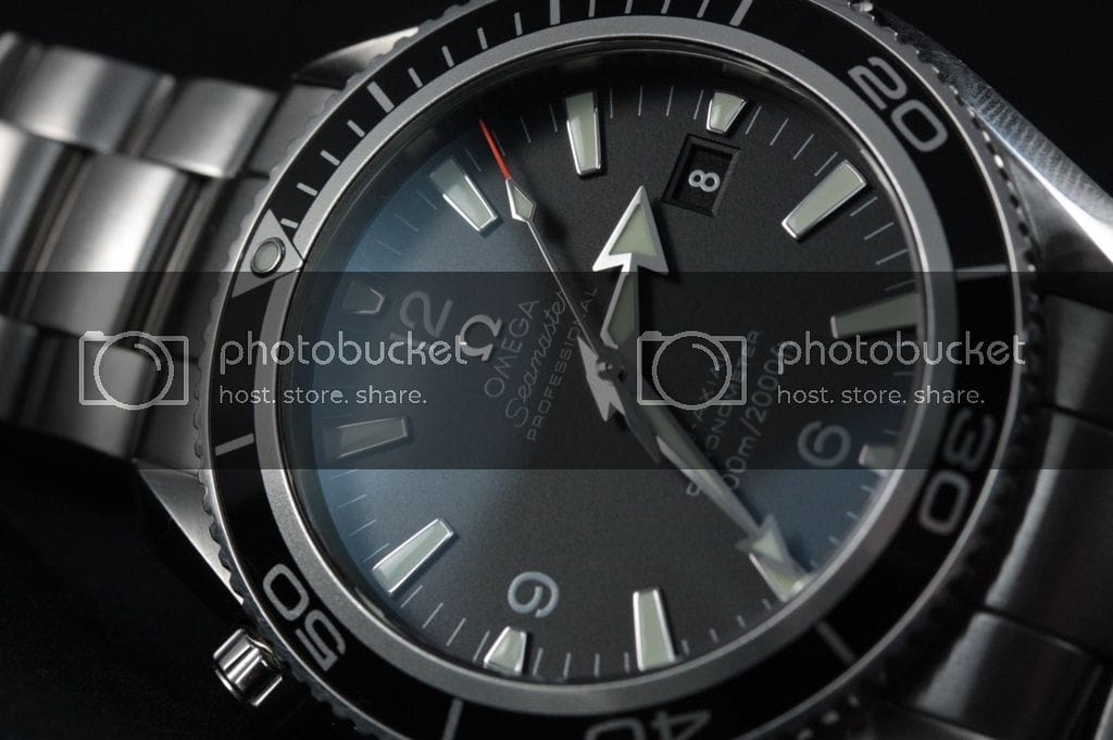 L’Omega Planet Océan : Aiguilles magnifiques, date sur fond noir qui s’intègre parfaitement, logo appliqué, double antireflet. Il n’y a pas à dire, cette montre est très belle.