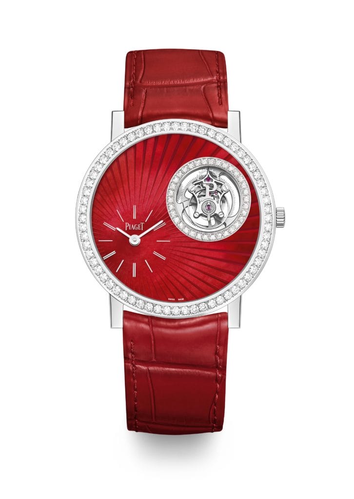 La bague de tourbillon des modèles 38 et 41 millimètres existe en or blanc ou or rose, avec un serti pavé en diamants ou une gravure d’un message personnel. Il est également possible de graver le fond de boîte. Une sélection de plus de 25 cuirs d’alligator différents est proposée pour parfaire l’Altiplano Infinitely Personal Piaget.