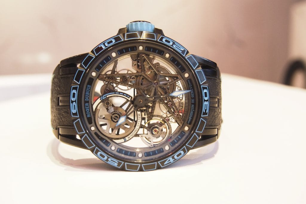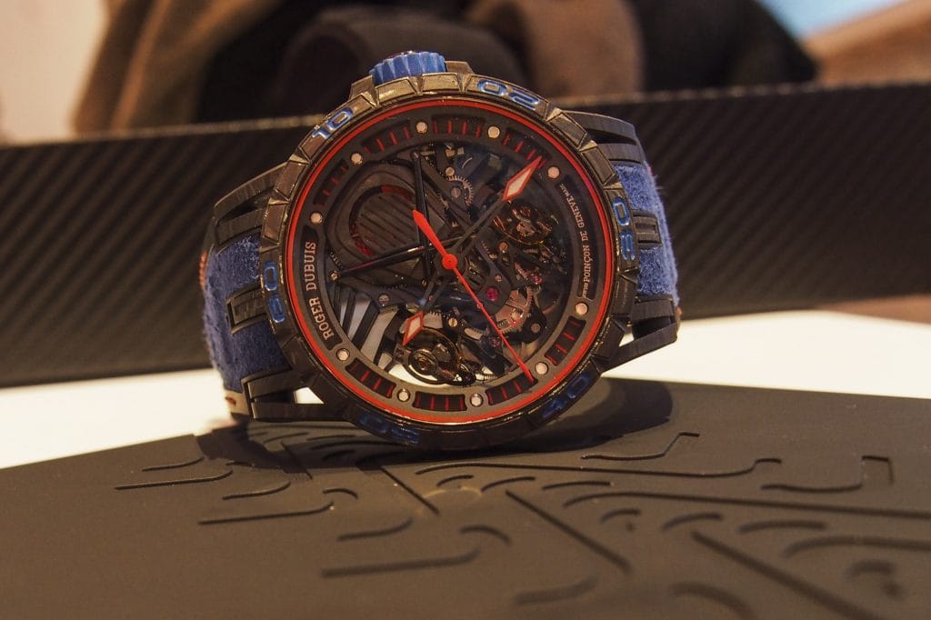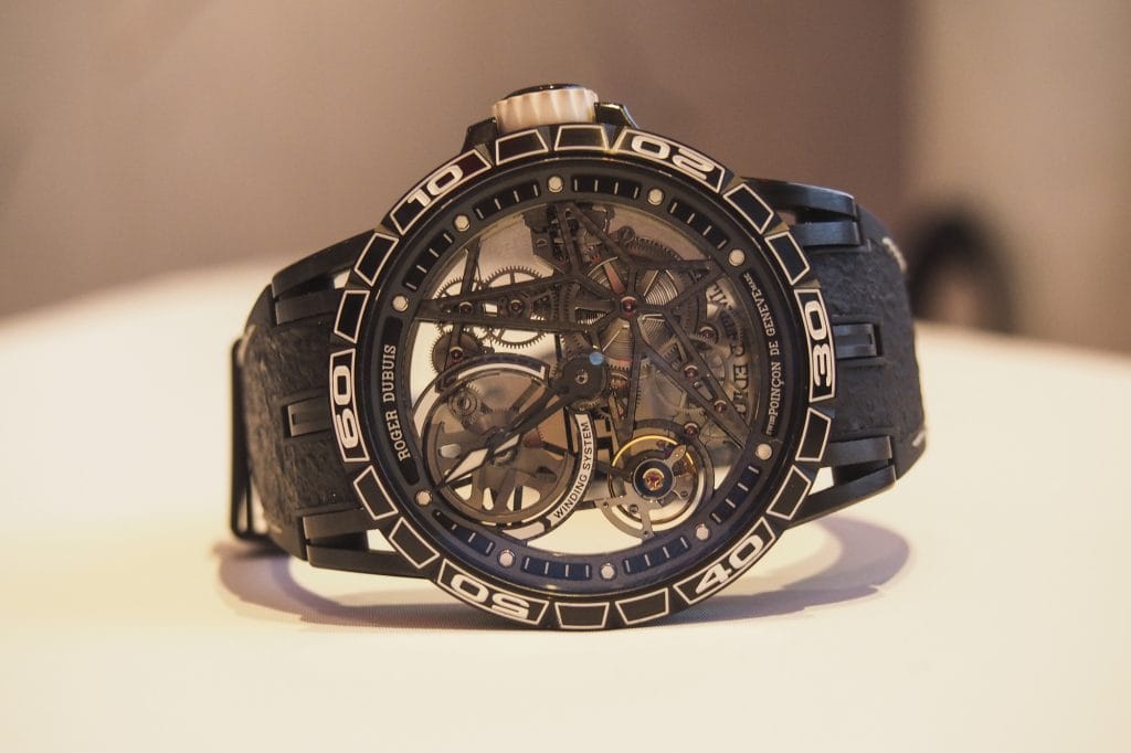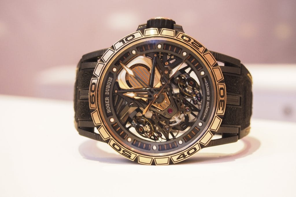 Dans cette quête disruptive, Roger Dubuis s’est donc aussi allié avec le fabricant de pneumatiques Pirelli pour constituer une collaboration sans précédent. Car, ce n’est pas un modèle mais toute une collection de montres qui est aujourd’hui disponible au catalogue de la manufacture. Bâtie sur le modèle Excalibur, on y retrouve les différents calibres squelettes qui font le prestige de la marque : mouvement automatique ou à double tourbillon volant.