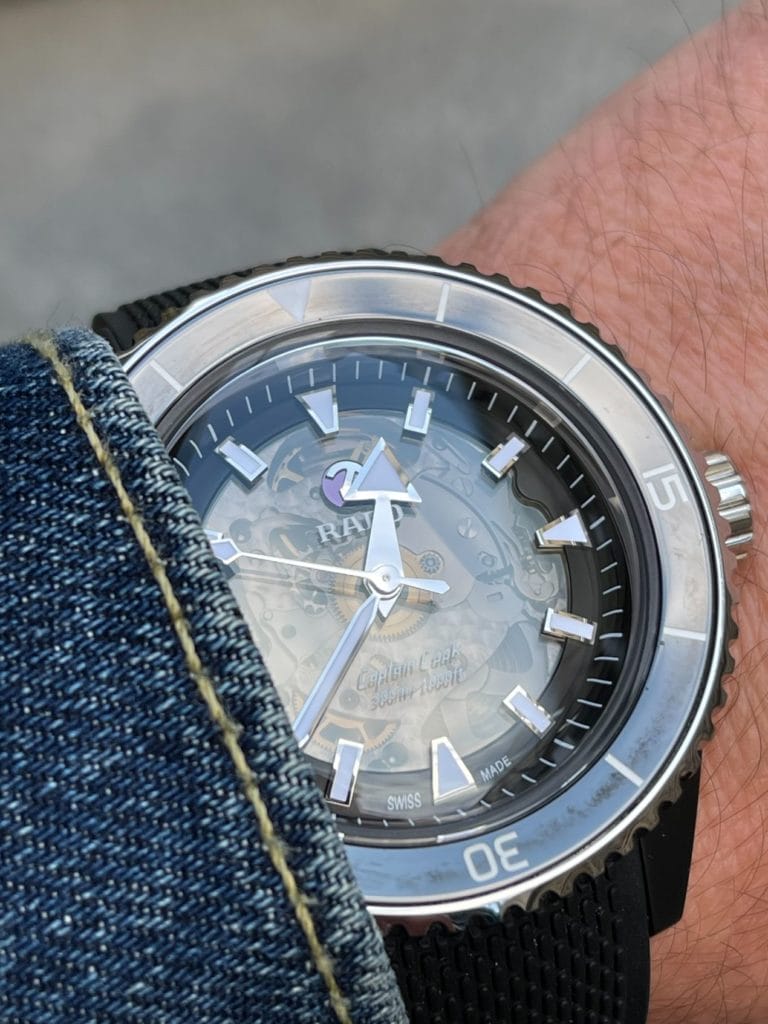 En 2017, Rado sort de sa zone de confort. La marque, pionnière dans le développement et l’usage de la céramique high-tech est connue pour produire des créations aux lignes contemporaines voir futuristes. Or, cette année, elle dévoile, contre toute attente, une montre de plongée. L’HyperChrome Captain Cook détonne par son esthétique vintage, son aiguille des heures de type Broad Arrow, et son diamètre de 37mm.