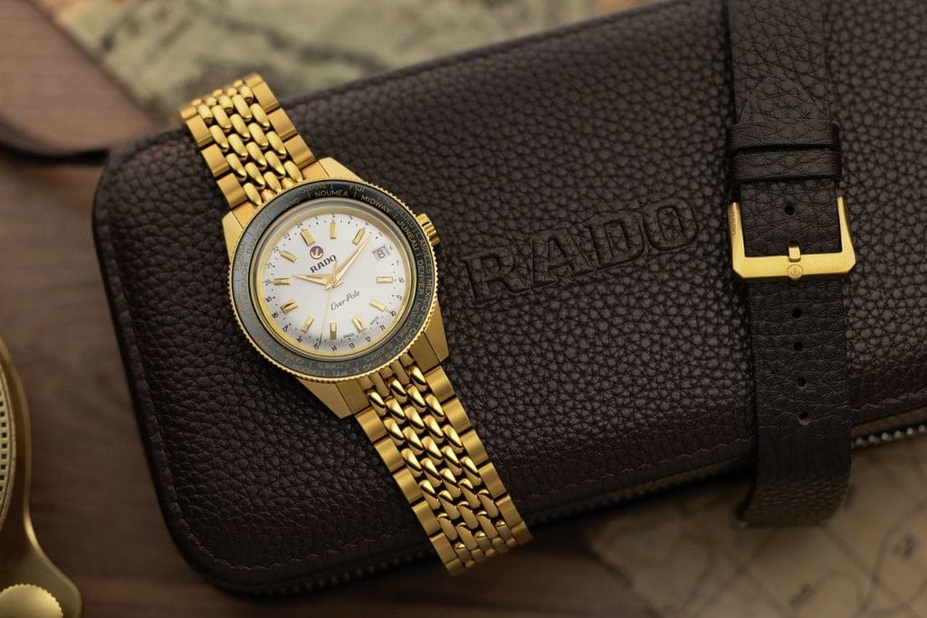 En 2022, Rado rendait hommage à son patrimoine en réinterprétant son modèle Captain Cook Over-Pole de 1962. Une icône revisitée avec finesse, animée par le calibre R862 à remontage manuel, un mouvement Worldtimer de haute précision offrant une réserve de marche de 80 heures, trois aiguilles, un guichet de date à trois heures et 17 rubis.