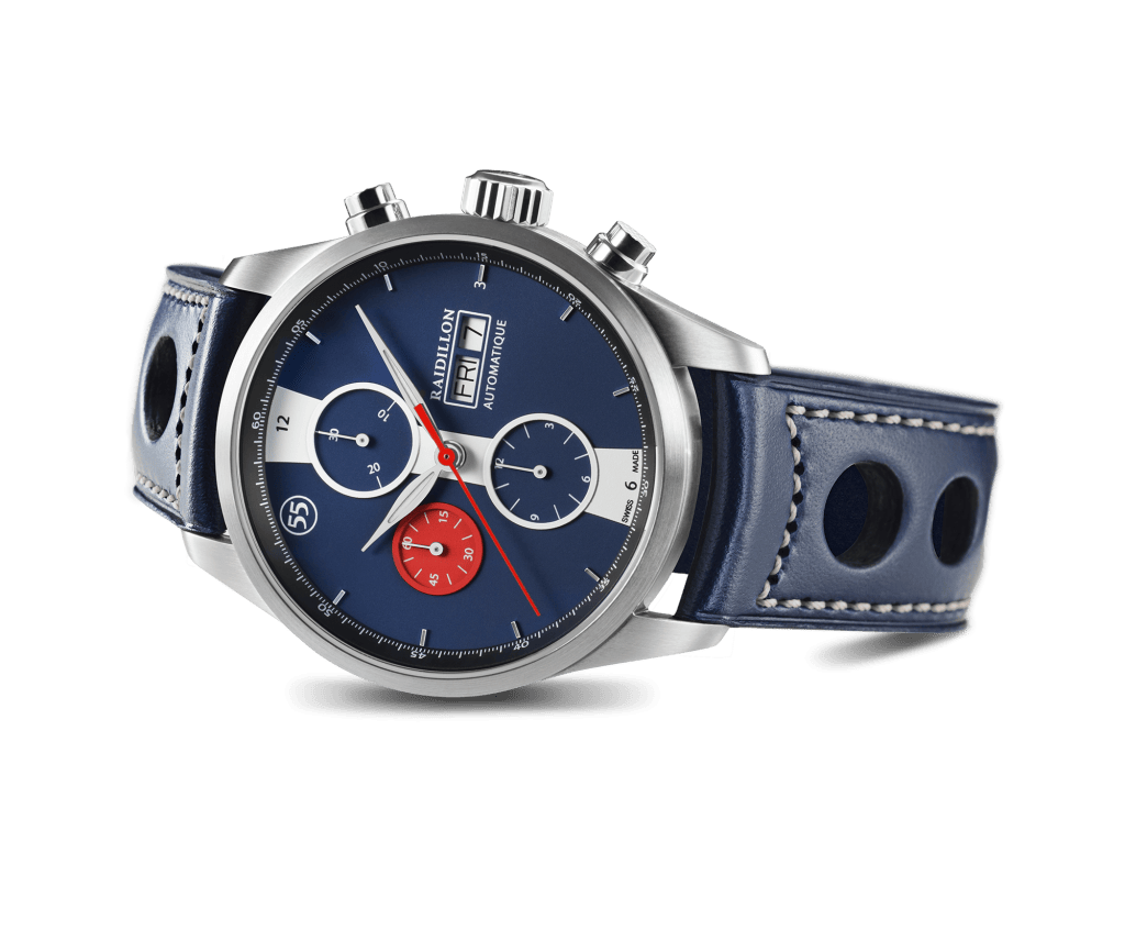 Depuis 2001, Raidillon, c’est le nom d’un célèbre virage abrupt, situé sur un circuit automobile non moins célèbre; Spa-Francorchamps, en Belgique. La marque horlogère, créée en 2001, s’inscrit dans l’univers des courses automobiles et du plaisir de la conduite. Les garde-temps Raidillon sont dotés d’un mécanisme suisse et d’un design 100% belge. Produits en séries limitées, 55 précisément, ces montres incarnent parfaitement l’accessoire du gentleman-driver moderne épris de style vintage, d’histoire sportive et de sensations fortes. Toute une stylistique et clin d’œil au circuit et au virage se retrouvent dans les créations de la maison Raidillon. Le numéro 55, clairement mis en évidence à 11 heures sur le cadran des montres représente le nombre maximum de participants autorisés dans certaines courses. 1955, c’est aussi l’année de création de l’Équipe Nationale Belge en sport automobile.