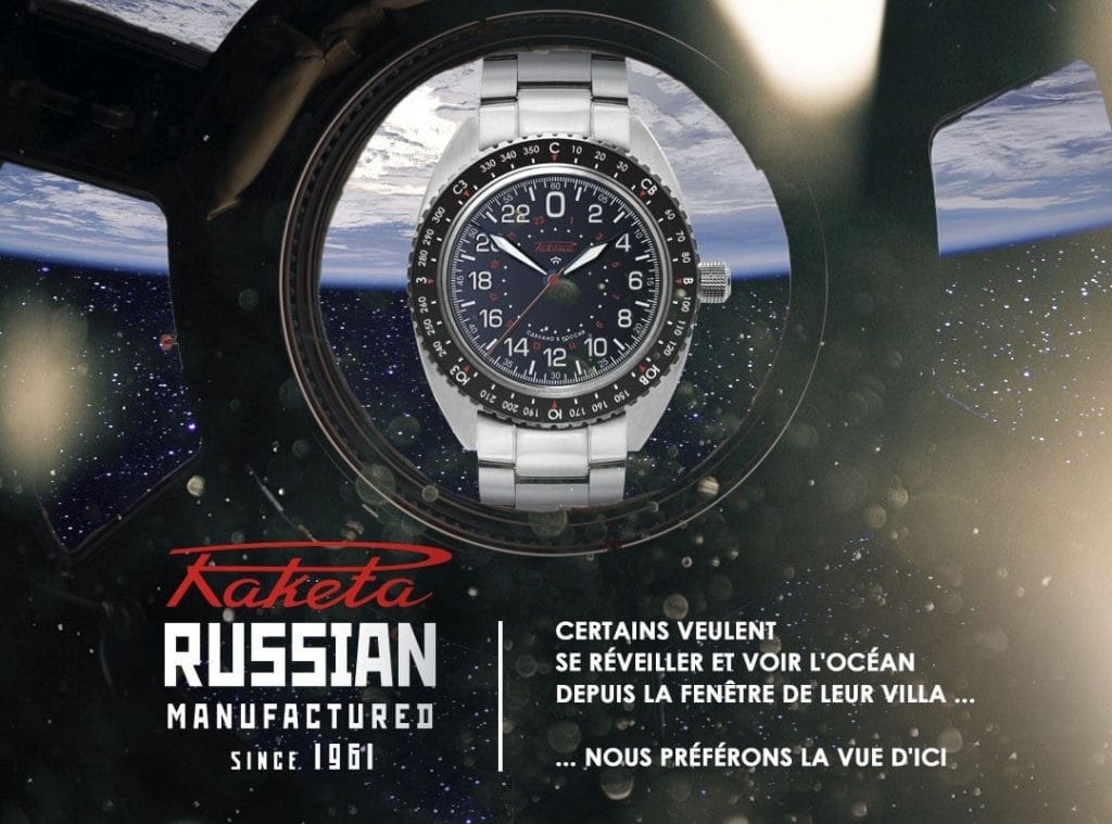 La marque Raketa (qui signifie “fusée spatiale” en russe) a été créée en 1961 en l’honneur du premier vol spatial humain par Yuri Gagarin. Par la suite, la Manufacture Horlogère Raketa a produit des montres pour les cosmonautes soviétiques et des montres qui célèbrent l’espace. Aujourd’hui, nous continuons cette tradition. Cette montre pour cosmonautes a été conçue en collaboration avec le cosmonaute Sergueï Krikalev.