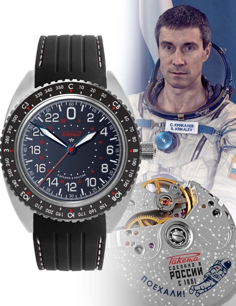 Sergueï Krikalev détient l’un des records du nombre de séjours dans la station spatiale internationale (6 séjours) et du temps passé en orbite en durée cumulée (803 jours). Il a reçu les titres de Héros de l’Union Soviétique et de Héros de la Fédération de Russie. Il sait donc mieux que quiconque quelle doit être la montre idéale pour les cosmonautes.