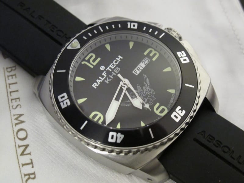RALF TECH 50 montres pour 50 hommes : Issues d’un partenariat basé sur une confiance réciproque, modifiées pour répondre aux exigences et besoins spécifiques de cette unité aussi prestigieuse que discrète, ces montres avec une technologie hybride, mécanique automatique + stockage d’énergie sur base Seiko, sont utilisées en conditions extrêmes depuis plusieurs mois et ont fait la démonstration de leur efficacité.