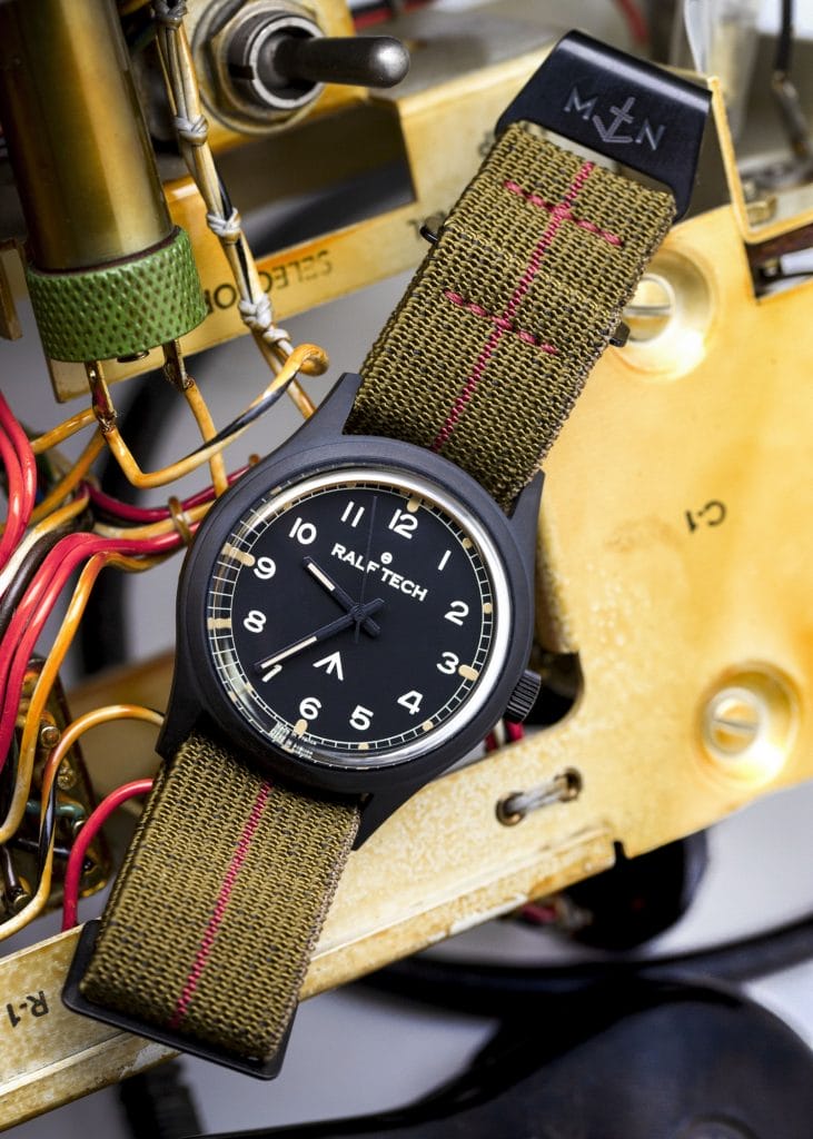 Avec la ACADEMIE « Veteran » Black nous avons souhaité mixer l’histoire et les histoires… Une base automatique et vintage de taille raisonnable… Des codes visuels se référant à la seconde guerre mondiale assumés… Un bracelet Marine Nationale en authentique sangle de parachute… Les forces spéciales françaises et britanniques… La nuit et le jour.