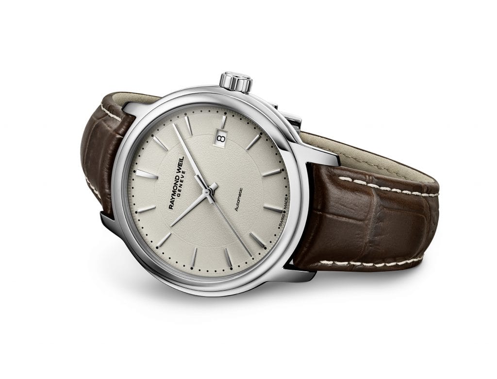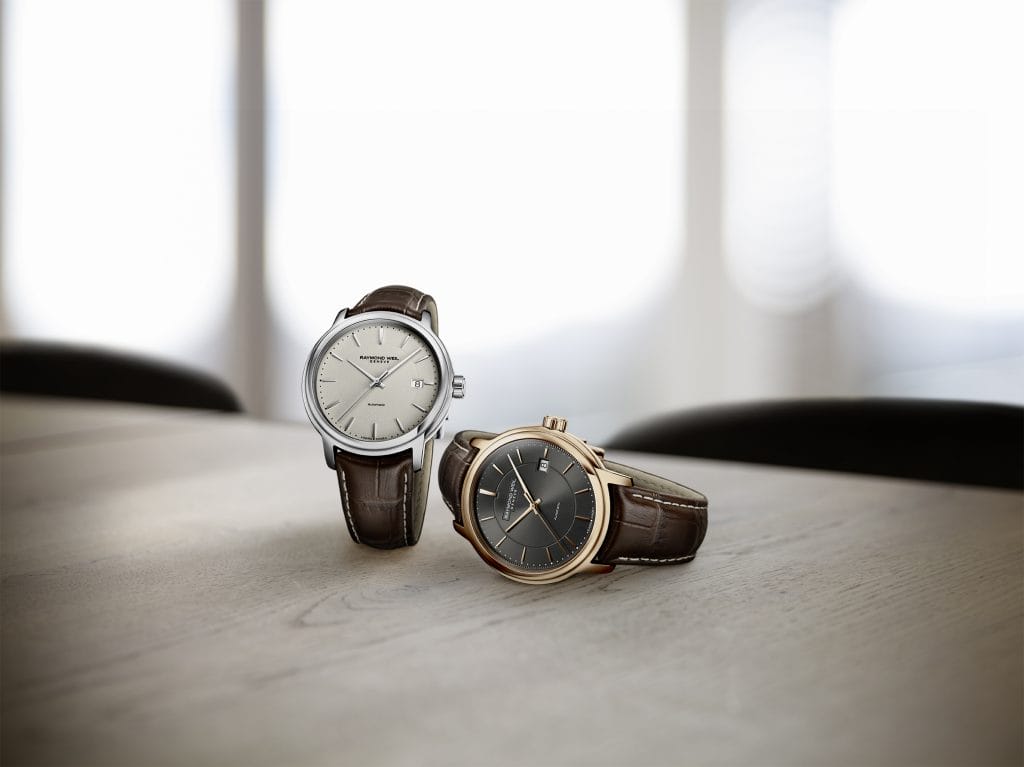 Maison horlogère Suisse RAYMOND WEIL est fière de présenter ses nouveaux modèles qui viennent compléter son emblématique collection maestro. Ces garde-temps sont empreints de l’élégance classique qui caractérise la collection tout en ajoutant une touche subtile de modernité avec des lignes épurées et de luxueux bracelets en cuir.