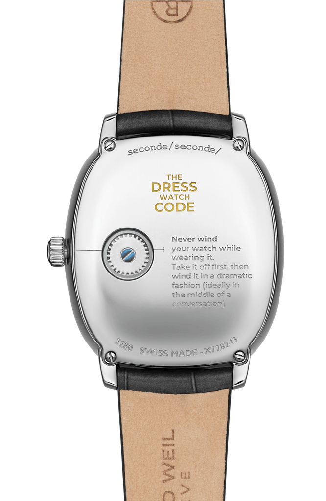 La Toccata Heritage x seconde/seconde/, proposée en édition limitée, mêle élégance et humour. Elle questionne la manière de porter sa montre, à la manière d’un jeu où chaque geste n’a de valeur que précédé d’un mot-clé. “Raymond a dit” devient ainsi une invitation à suivre – ou à détourner – les codes du bon goût. À travers ce clin d’œil, RAYMOND WEIL s’amuse à revisiter les gestes et conventions liés à la dress watch.