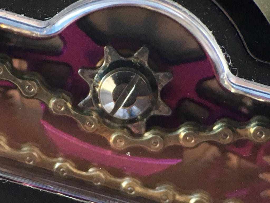 Ces deux micro-chaînes sont composées de 182 éléments. Elles mesurent chacune 46 mm et surtout elles ont une possibilité de supporter une charge de 8 kg. Ce qui est assez incroyable mais qui est nécessaire pour délivrer toute la force et l’énergie depuis ces six barillets.