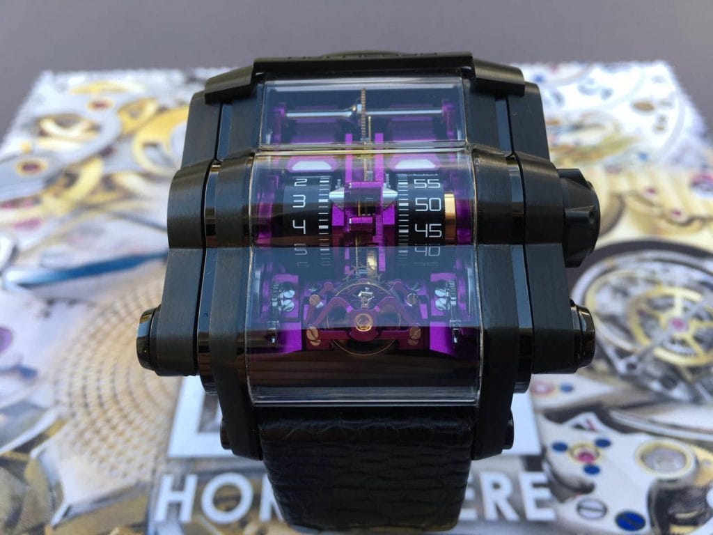 Lorsque vous l’avez au poignet, il est vrai que cette montre ne laisse absolument personne indifférent. Certains aiment, d’autre moins… Cependant au poignet, elle est très confortable et très visible. C’est une montre qui a une réelle présence et si vous voulez vous amuser et amuser un petit peu les gens autour de vous, actionnez tout simplement le levier de remontage … ça ne laisse personne indifférent !