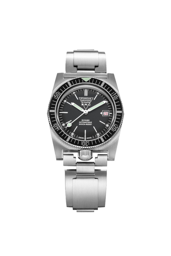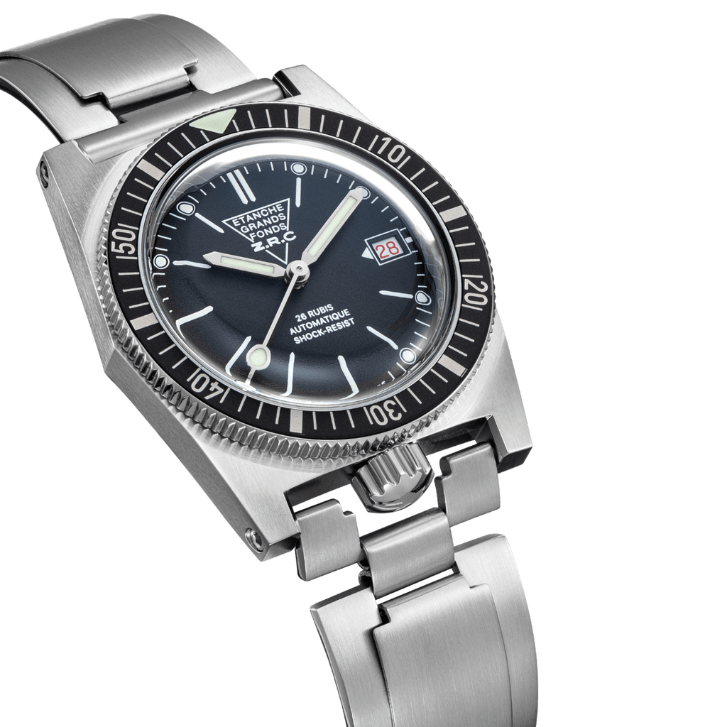 Ce modèle a été développé à partir de 1958. Mais c’est en 1964 qu’il devient la montre officielle de la Marine Nationale française. D’une conception innovante, la ZRC Grands Fonds répond parfaitement à un cahier des charges sans concessions. Equipée d’un boîtier à 6 pans, elle est étanche jusqu’à 300 mètres de profondeur. De plus, elle présente une ergonomie inédite avec une couronne à 6h. Tous ces éléments deviennent alors des arguments propres à séduire le corps armé, les plongeurs professionnels, mais également le grand public. La réinterprétation moderne présentée en 2015 a confirmé ce grand succès d’alors. Le public a été à nouveau au rendez-vous.