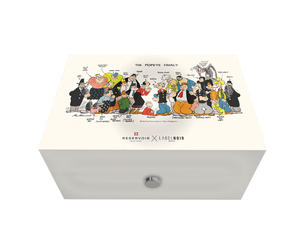 Audacieuse dans sa création et plus encore au poignet, la nouvelle montre Reservoir x LabelNoir x Popeye est prête à passer à l’action. Le garde-temps est disponible en série limitée de 200 pièces. Chaque modèle numéroté est présenté dans un coffret en bois orné d’une image « The Popeye Family » avec une figurine en résine chromée de « Popeye mangeant des épinards » et un écusson brodé spécialement en l’honneur de Popeye. Un certificat d’authenticité accompagne le coffret.