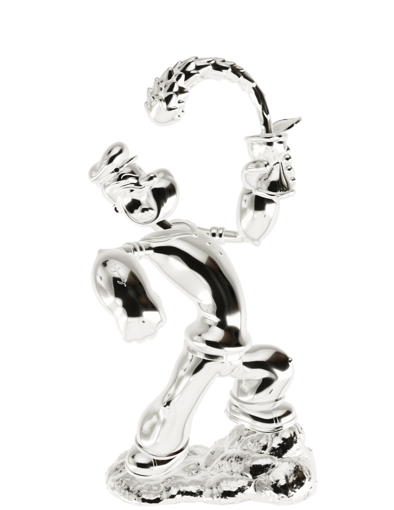 – Contient une figurine en résine chromée de « Popeye mangeant des épinards »