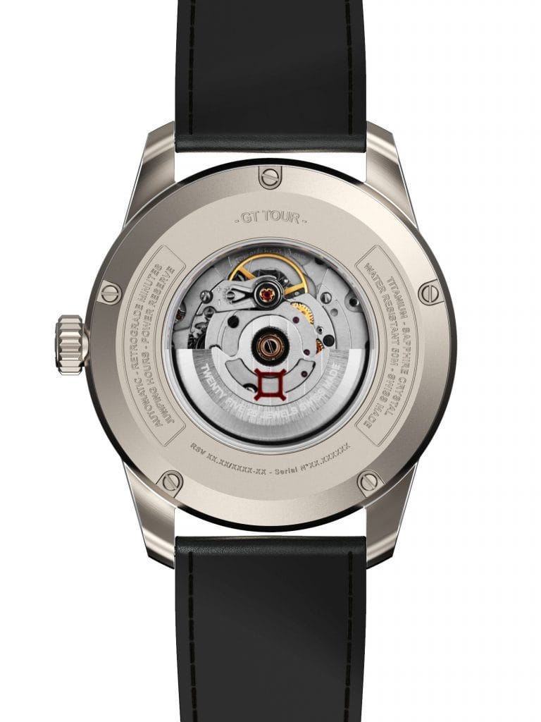 La nouvelle Gt Tour Skeleton assume parfaitement son identité au sein de la gamme Reservoir. Une famille de montres inspirée par la passion automobile sous toutes ses formes, de l’émotion créée par la contemplation du design aux sensations fortes éprouvées sur la piste ou au fil de la route. Avec son boîtier de 43mm, réalisé en titane aux finitions brossées, la montre s’insère parfaitement au sein de cette écurie. Déjà remarquée pour son style affirmé et son caractère, cette collection l’est aussi pour ses performances. Son mouvement mécanique Swiss Made à remontage automatique élaboré sur la base du calibre ETA 2824-2 n’y est pas pour rien.