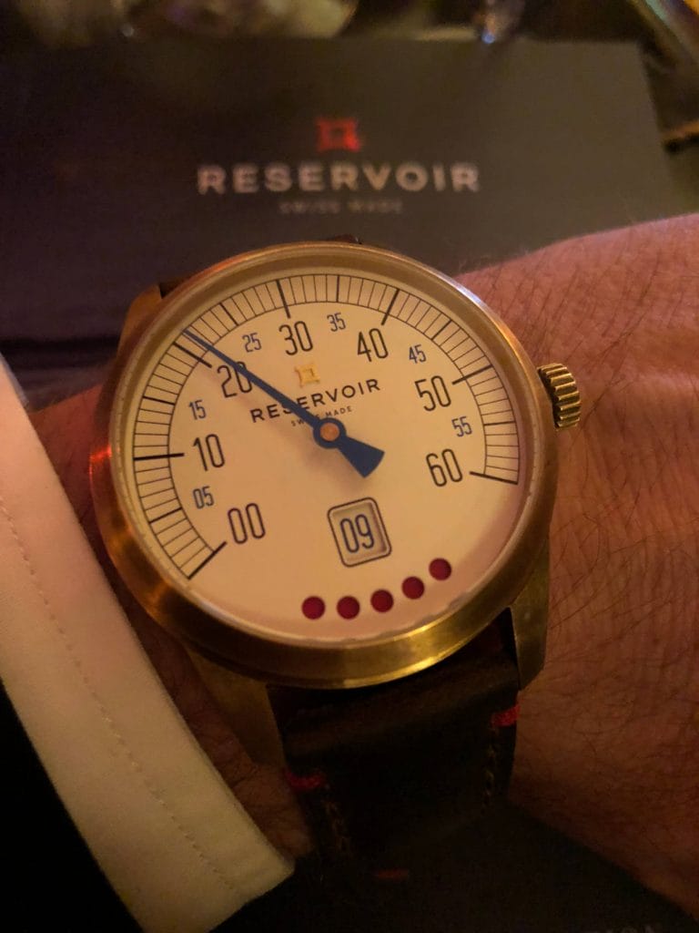 Réservoir est une maison horlogère française qui est née de la passion d’un homme pour les compteurs anciens. François Moreau, le fondateur et initiateur du projet, a trouvé en Guillaume de Bonvouloir, François Nakkachdji et François-Marie Neycensas le soutien, la passion et les compétences qu’il lui manquait pour se lancer dans l’aventure de sa vie. C’est ainsi que les quatre associés ont pu développer l’idée initiale, trouver les fonds nécessaires, et arpenter les vallées suisses à la recherche des fournisseurs qui leur permettraient de donner vie à leurs rêves conjugués. La marque Réservoir était née et pouvait prendre ses quartiers à Paris.
