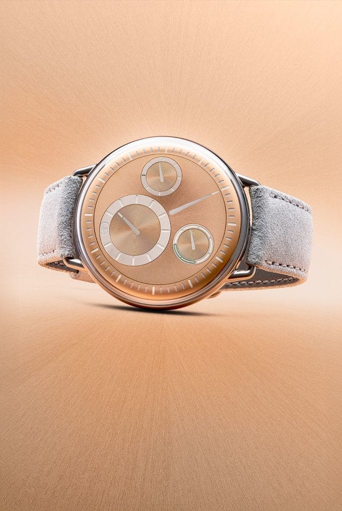 « L’or rose apporte une certaine chaleur et un caractère à notre langage de design », explique Benoît Mintiens, fondateur de Ressence, dont la marque basée à Anvers a déjà proposé plusieurs déclinaisons réussies de ce modèle depuis le lancement de la première TYPE 1 en 2014.
