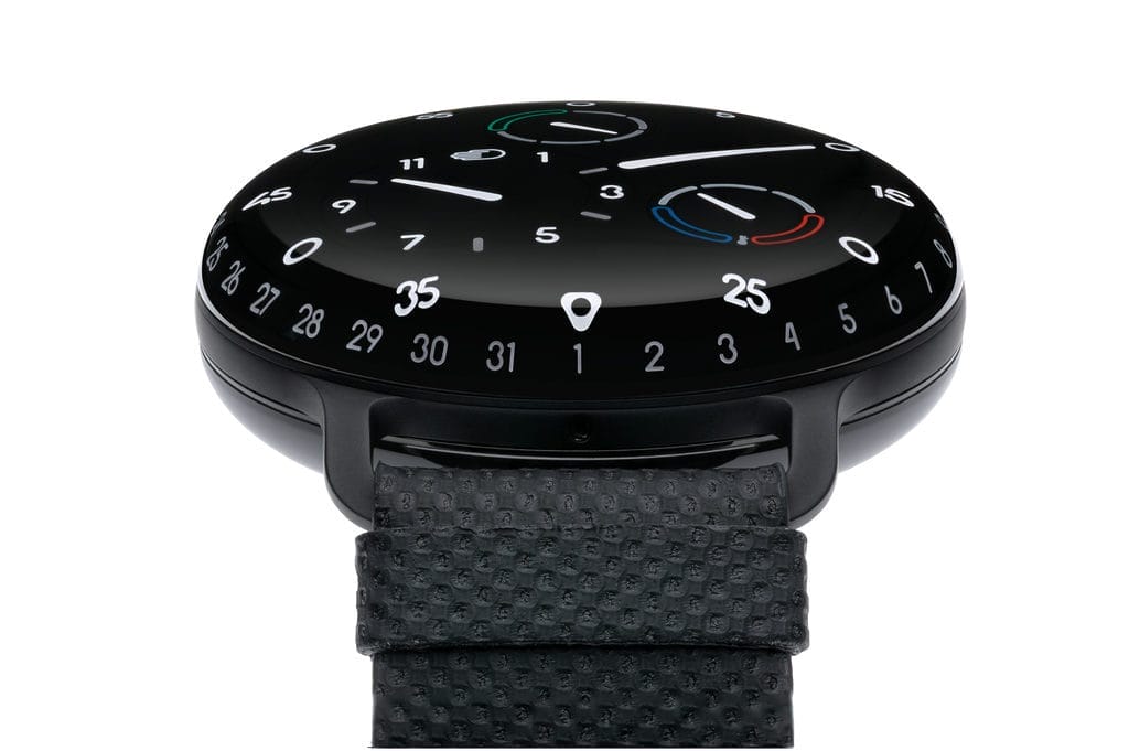 “Une édition TYPE 3 d’un noir intense accentue l’effet captivant de nos cadrans à disques rotatifs affleurants. Ils agissent comme un écran mécanique, trompant les sens du spectateur et suscitant l’émerveillement, » déclare Benoît Mintiens, fondateur de Ressence.