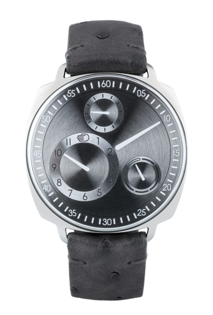 La RESSENCE TYPE 1 existe en 4 versions de cadran et 2 formes de boîte : Ruthénium/Silver (gris foncé/ argent), Black (noir), Night Blue (bleu) et White (blanche).