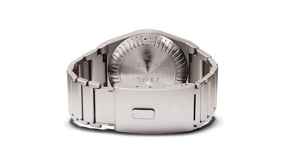 La Ressence TYPE 7 se présente dans un boîtier de 41 mm en titane grade 5, matériau de choix pour allier légèreté, résistance et confort au porté. Pour la première fois chez Ressence, ce boîtier s’accompagne d’un bracelet intégré, lui aussi en titane grade 5, offrant une continuité visuelle et ergonomique remarquable. Le fermoir déployant, parfaitement intégré, assure un ajustement précis et un confort durable, même lors d’un usage prolongé.