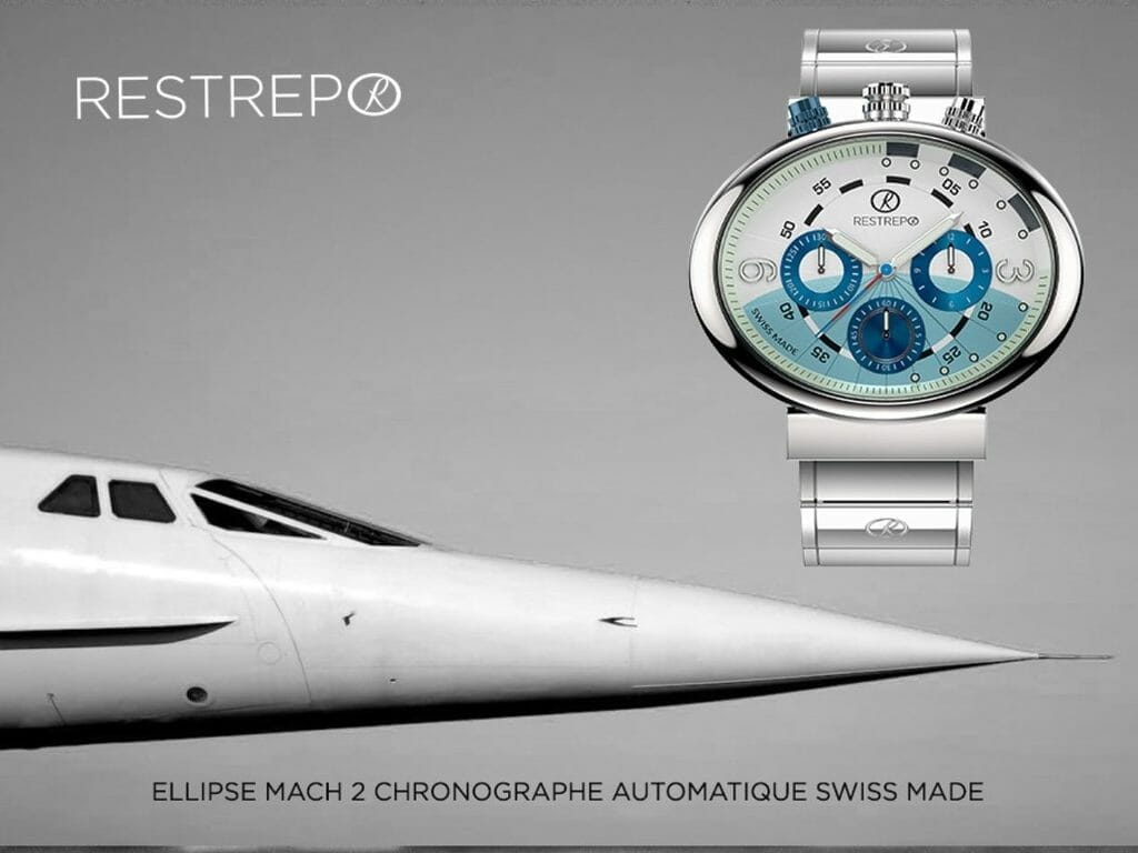 Etant donné qu’il voyageait toujours avec un carnet de dessins, il a commencé, lors de ce vol, à dessiner des montres d’une nouvelle conception adoptant une forme elliptique qui a inspiré la première collection de la marque RESTREPO.