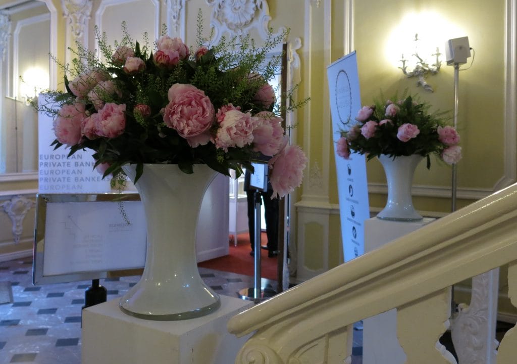 Les stands des exposants étaient répartis dans les différentes salles mais aussi dans le parc. Il était en effet un peu délicat de faire entrer les engins motorisés entre les murs du château, même si c’est une magnifique cylindréee Brough SS100 qui attirait cependant l’oeil des visiteurs dans le très agréable décor floral du hall d’accueil !